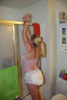 Diaper-girl entravées debout et obligées d'attendre sagement que ....