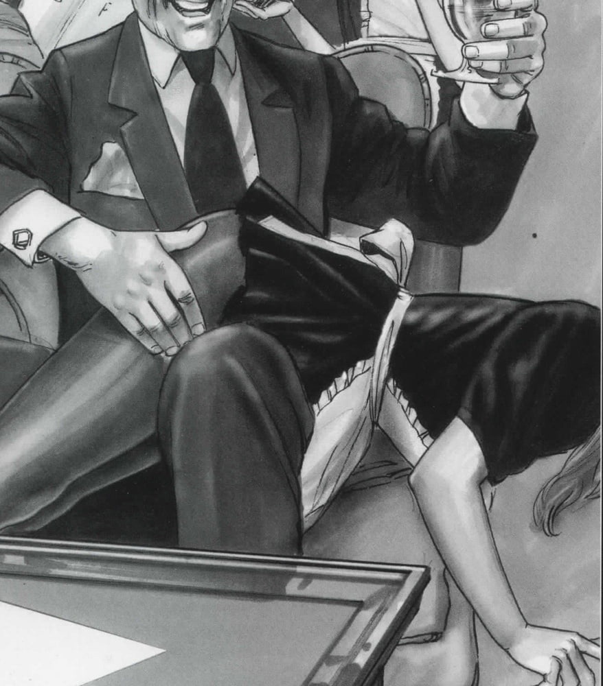 Pendant qu'elle déguste, il vient la caresser, d'abord le cou, puis ses mains glissent jusqu'à son décolleté, massent ses seins bien fermes et lourds, descendent sur son ventre. Elle gémit, il la ressert: "Continue de mâcher", ses mains poursuivent leur exploration. La viande finit, il cesse ses caresses et lui propose des haricots verts qu'il lui donne d'abord un par un. La coquine les attrape de ses mains menottées pour les sucer sensuellement en poussant de petits gémissements provocateurs avant de les manger.