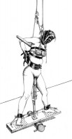 Piégée entravée sans possibilité de fuite et sans même savoir qui vient d'entrer au donjon