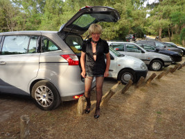 Sophya montre son statut (et sa carte) de soumise en "public" avec docilité et impudeur ...