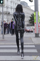 Passer une corde au premier bracelet, ramené au collier, attaches derrière la tête, et relier le tout au deuxième bracelet.